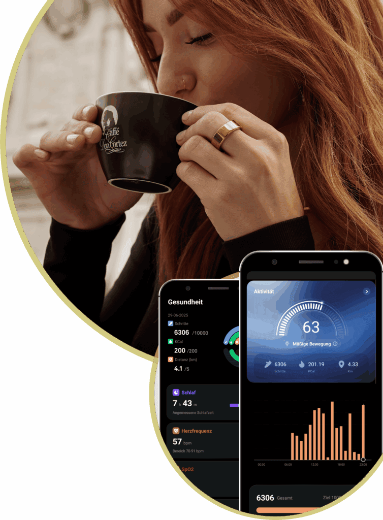 Unsere Aktivitätsaufzeichnung geht weit über einfache Schrittzähler hinaus. Der NEXTRING erfasst kontinuierlich Bewegung, Herzfrequenz, Kalorienverbrauch, Trainingsintensität und Erholungsphasen.So erhältst du ein realistisches, datenbasiertes Bild deines gesamten Aktivitätsniveaus, vom Alltag bis zum gezielten Training.
