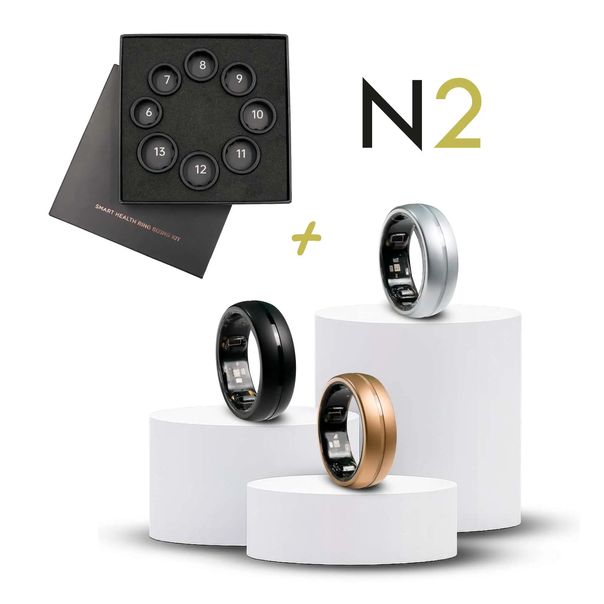 Bestelle deinen NEXTRING N2 und erhalte zuerst ein kostenloses Größen-Kit, um sicherzustellen, dass dein Ring perfekt passt. Das Größen-Kit kannst du behalten und brauchst es nicht zurückzusenden. Der Kaufpreis beinhaltet den NEXTRING N2 & das Größen-Kit ohne Extrakosten