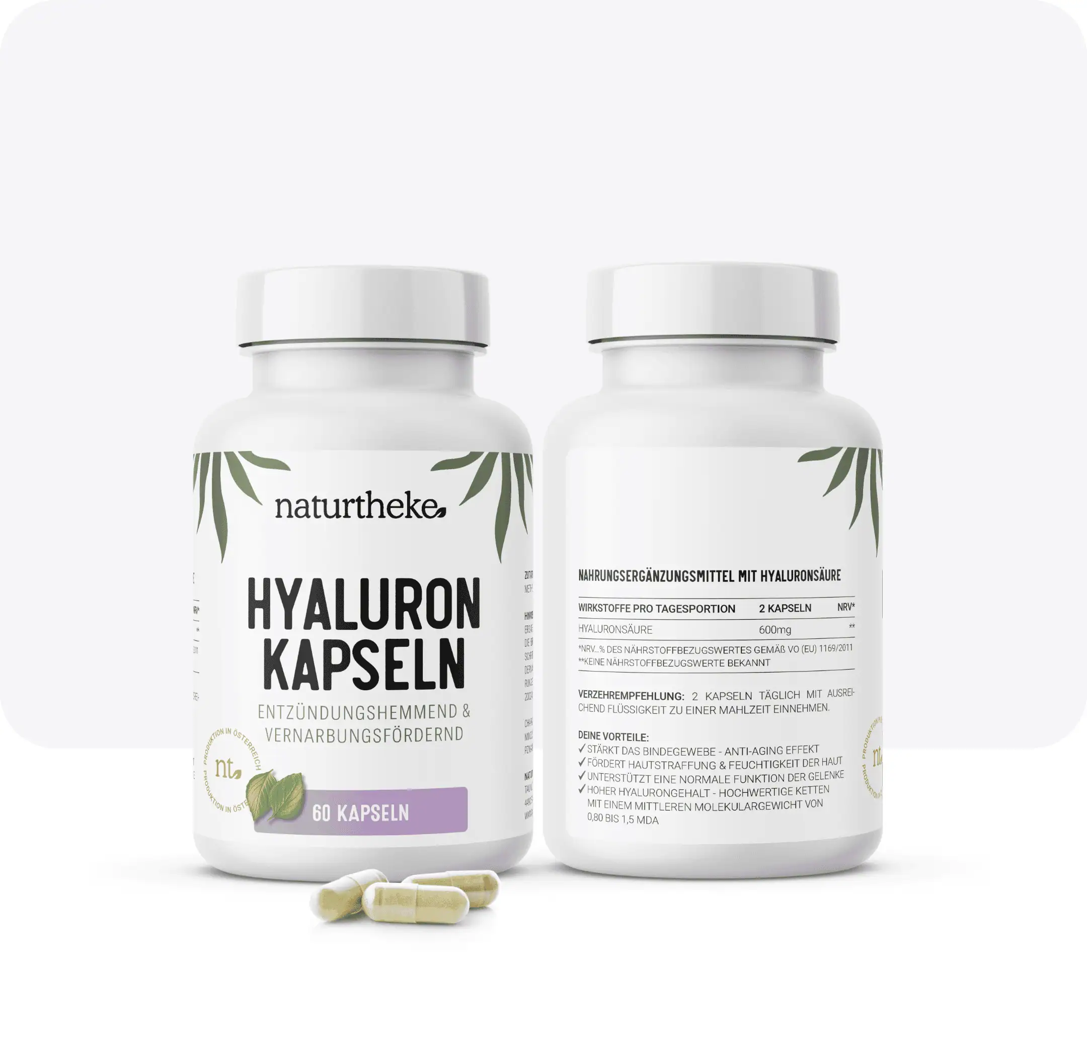 Reismehl, Hyaluronsäure, Hydroxypropylmethylcellulose (Kapselhülle)